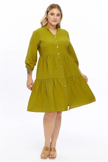 Kadın Büyük Beden V Yaka Düğmeli Midi Elbise 4483/105