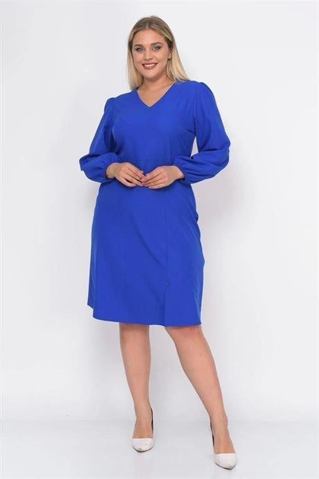 Kadın Büyük Beden Yırtmaç Detaylı V Yaka Midi Krep Elbise 4479/110