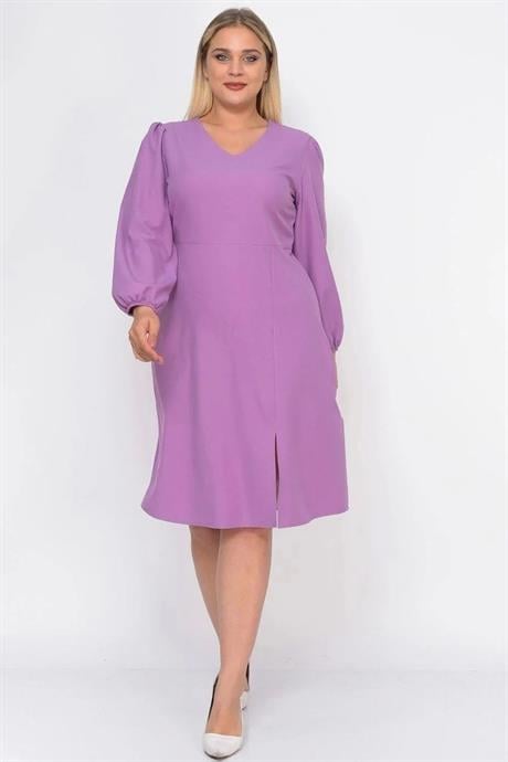 Kadın Büyük Beden Yırtmaç Detaylı V Yaka Midi Krep Elbise 4479/110