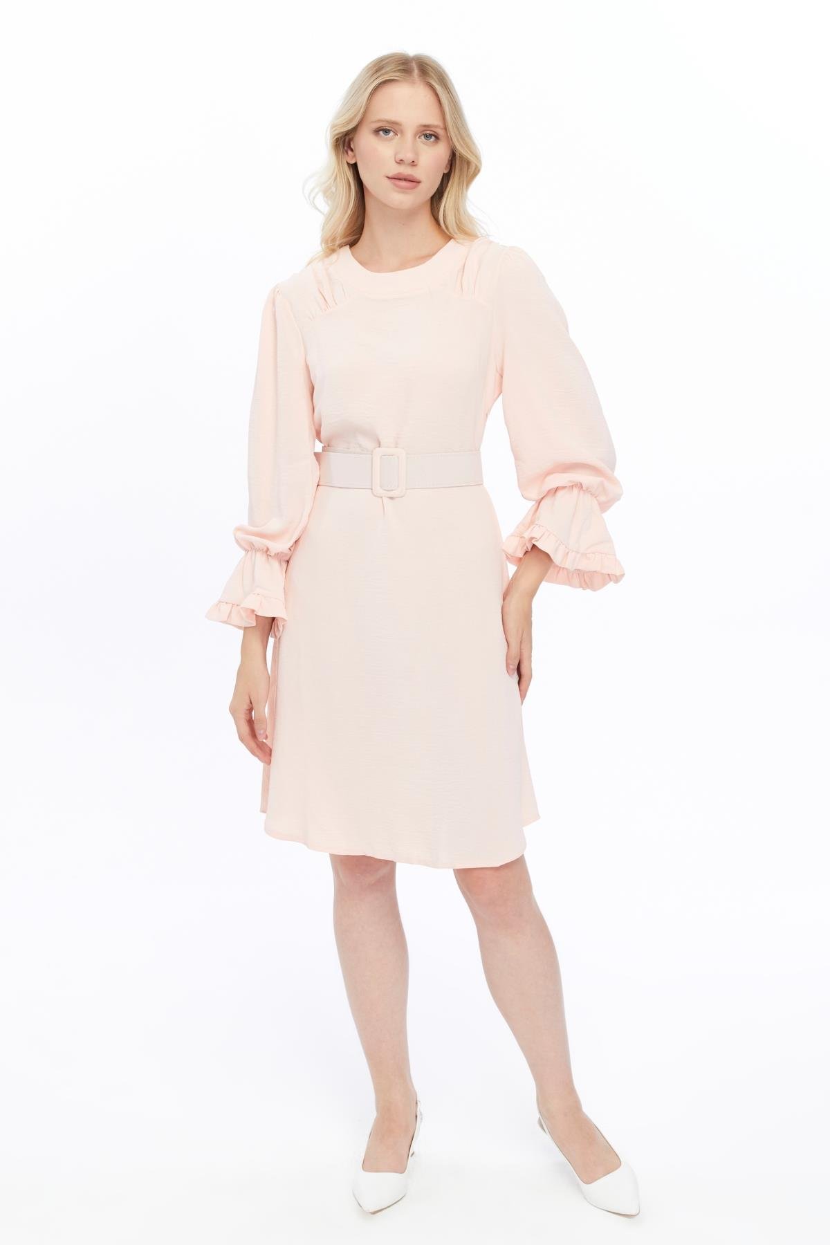 Kadın Kemer Detaylı Volan Kol Midi Elbise 4078/100