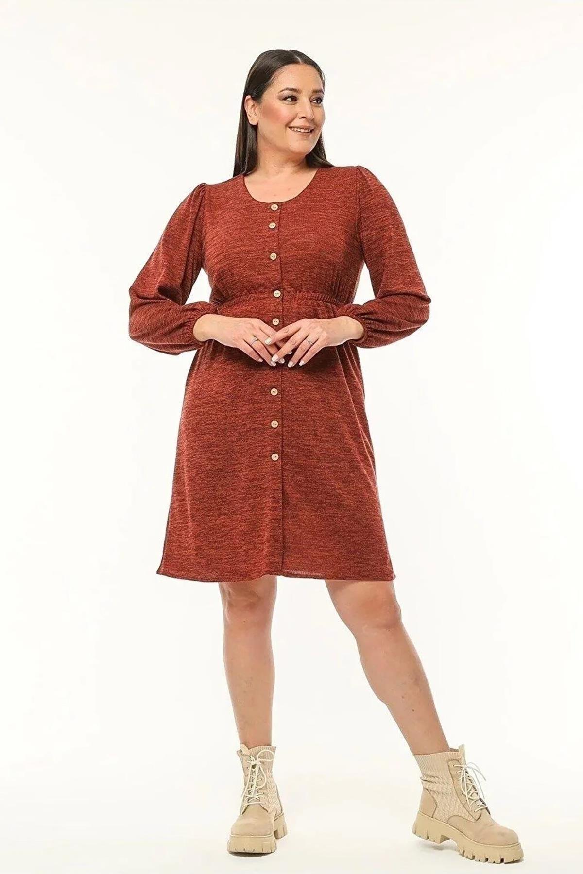 Kadın Uzun Kollu Düğme Detaylı Triko Elbise 4482/105