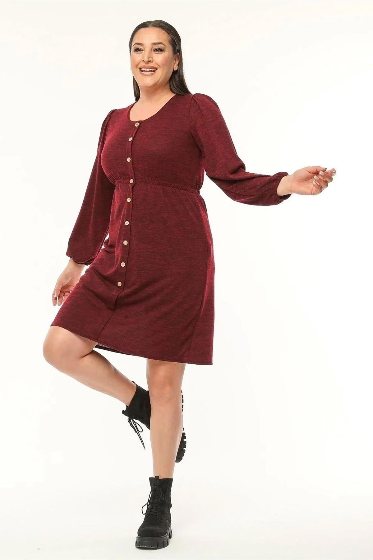 Kadın Uzun Kollu Düğme Detaylı Triko Elbise 4482/105
