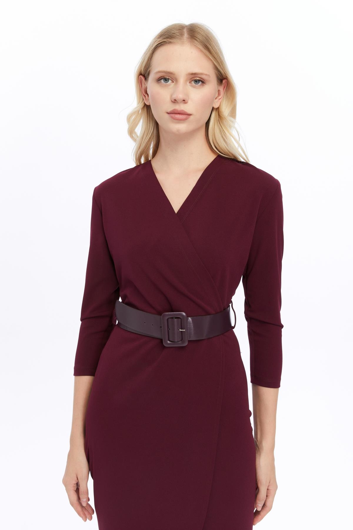 Renk: Mor (sıcak ve enerjik bir ton, dikkat çekici bir görünüm sunar) Kumaş Türü: Scuba Krep (esnek, dayanıklı ve formunu koruyan yapıya sahiptir) Kesim: Anvelop (zarif ve feminen bir siluet oluşturur) Yaka Tipi: Kruvaze Yaka (klasik ve şık bir detay) Bel Detayı: Kemerli (belinizi vurgular ve şıklığı artırır) Kol Tipi: Uzun Kol (mevsimlik kullanıma uygundur) Boy: Midi (diz altı uzunluk, hem şık hem rahat bir stil sunar)